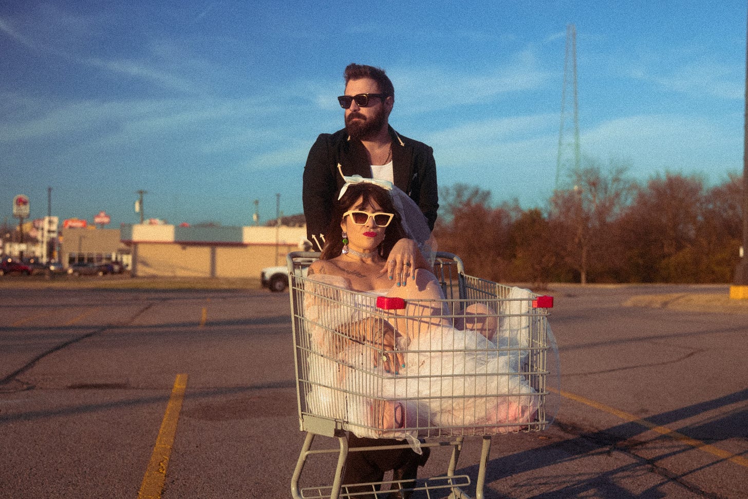 I love that photo. It says so much in a nice, fun way. Happiness is finding someone willing to push you home in a shopping trolley after accidentally getting married in Vegas at 4am. Hannah and Mose had this to say about their new release:-