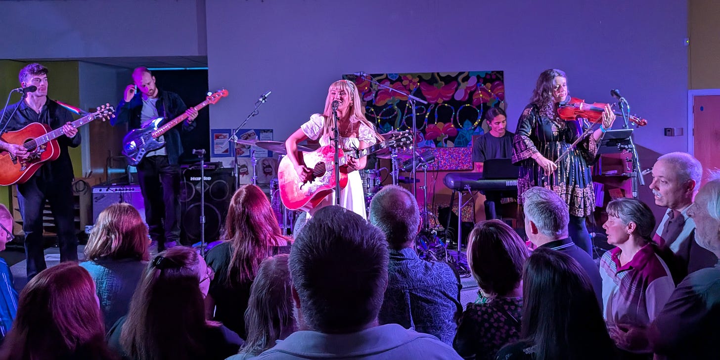 Rianne and band walked on as Glen Campbell’s Rhinestone Cowboy reached full volume. I briefly noted how this amazing 7-day period had started with Glen’s distant cousin, Miller Campbell at Bush Hall, London, last weekend and ended with Rianne Downey walking on to one of the most iconic country tunes of all time. So great to see today’s new stars being inspired by country lore from so many decades ago. As far as coincidences go, how about this one? Rianne recorded her album at Bear Creek in Seattle, Washington, a stone’s throw from where Miller grew up in America’s PNW region. Rianne often mentions Dolly Parton and Fleetwood Mac (Stevie Nicks especially) as inspirations.