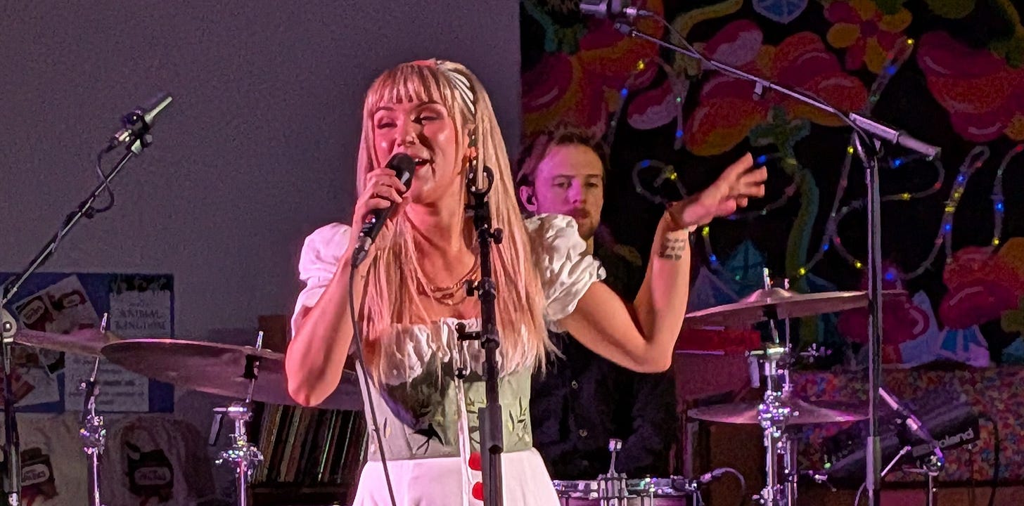 Amelia’s short Instagram bio says it all: folk goth. She plays ukulele on stage, and very proficiently too. Mrs Tennessee Vibes is learning the uke and admired the complex fingerpicking that Amelia managed while still remembering to sing.